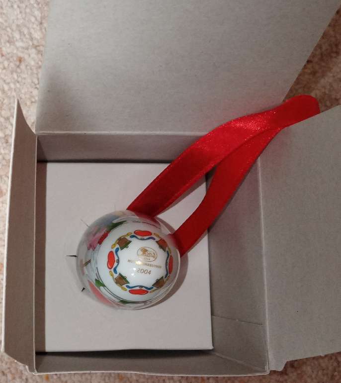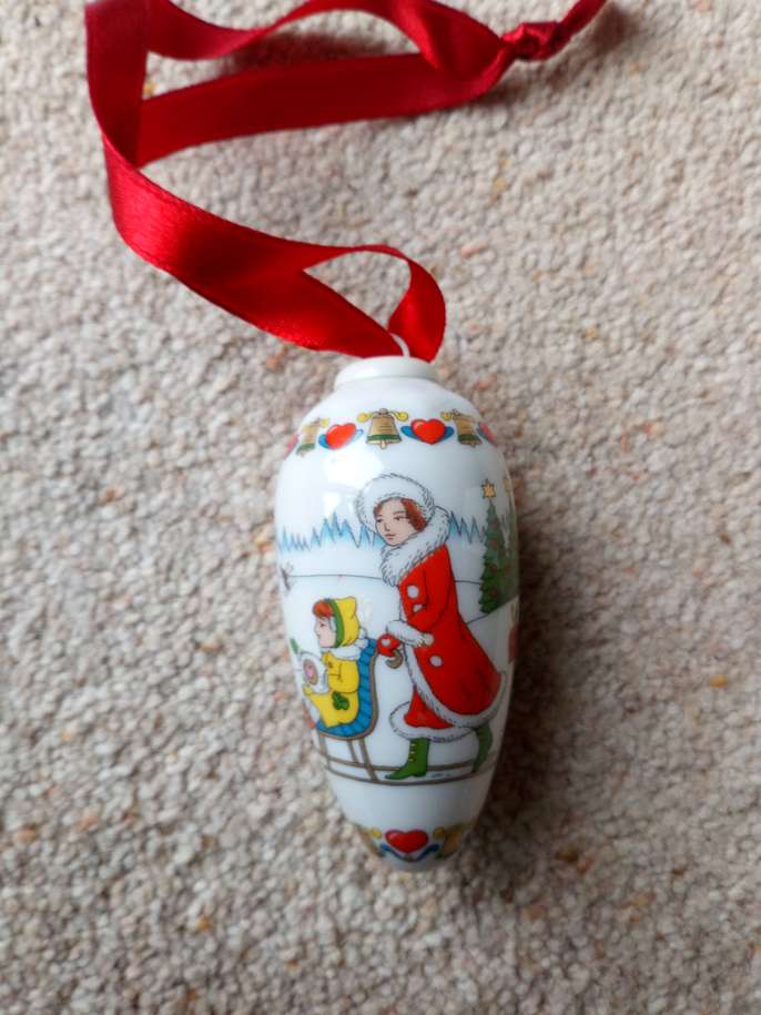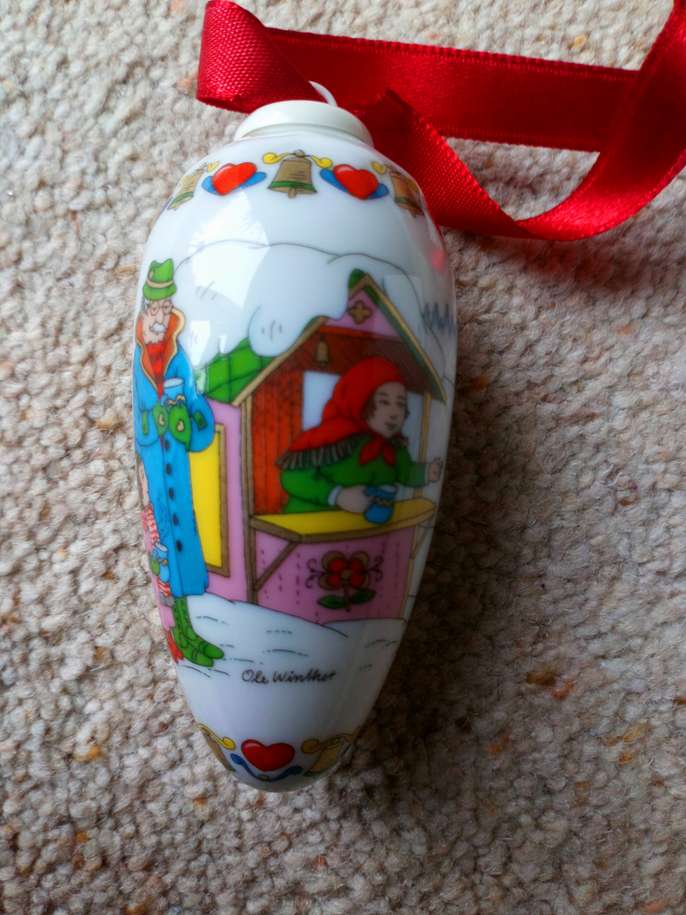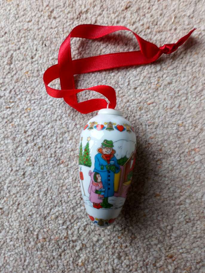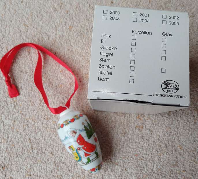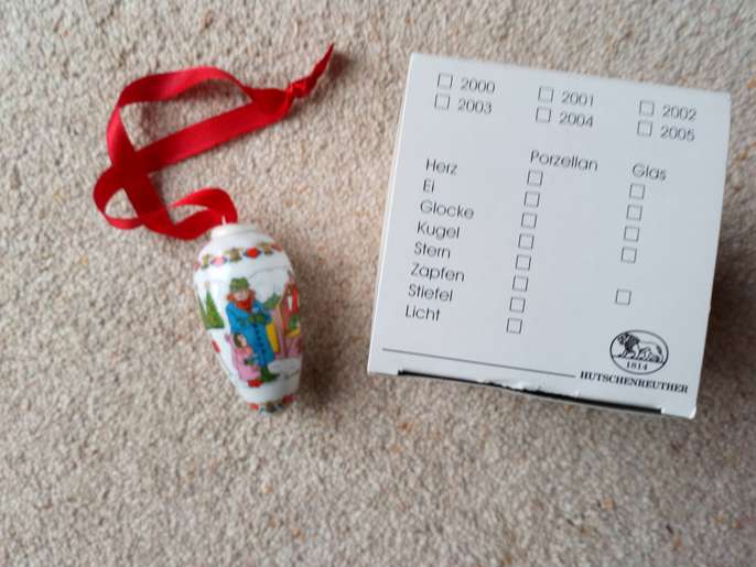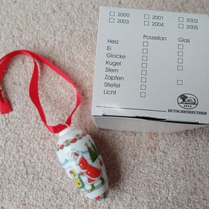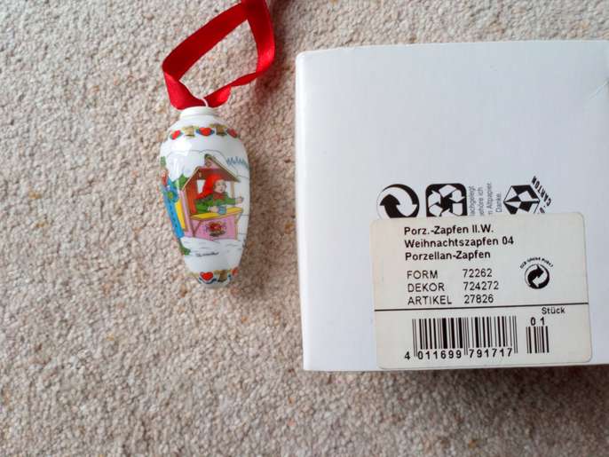 Hutschenreuther Zapfen Christmas Pine cone 2004 immaculate ornament, box has very slight marks on from storage. Beautiful old Christmas scenery (hand painted.) Collectors item. The 20-year-old porcelain painter Carolus Magnus Hutschenreuther laid the foundation for the first private porcelain factory in north-east Bavaria in 1814 Size: Length of cone 3 1/2" (8.89 cms) Round diameter 5" ( 12.7 cms) Red ribbon 8" (20.32 cms) Total length with the ribbon 11 1/2" (29.21 cms) I am selling 2 items on separate sales incase anyone prefers either the cone or the other which is a Christmas scene in ball shape. Any questions please ask. Money will be going to a local charity dear to my heart. Thank you