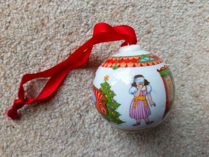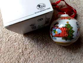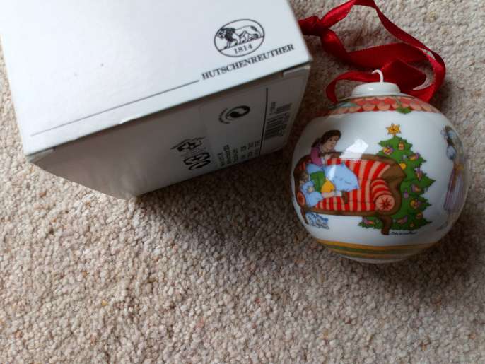 The light is shining on the decoration, brand new no flaws whatsoever. Hutschenreuther Zapfen Christmas ball shaped 2004 immaculate ornament. Beautiful old Christmas scenery (hand painted.) Collectors item. The 20-year-old porcelain painter Carolus Magnus Hutschenreuther laid the foundation for the first private porcelain factory in north-east Bavaria in 1814 Size: Length of Ball 3" (7.62 cms) Round diameter 8" (20.32 cms) Red ribbon 6" ( 15.24 cms) Total length with the ribbon 9" (15.24 cms) I am selling 2 items on separate sales in case anyone prefers either the ball or the other which is a different Christmas scene in a pine cone shape. Any questions please ask. Money will be going to a local charity dear to my heart. Thank you