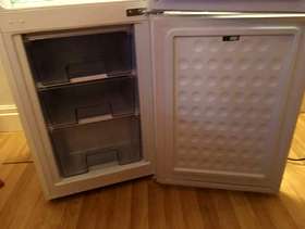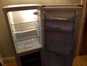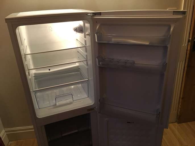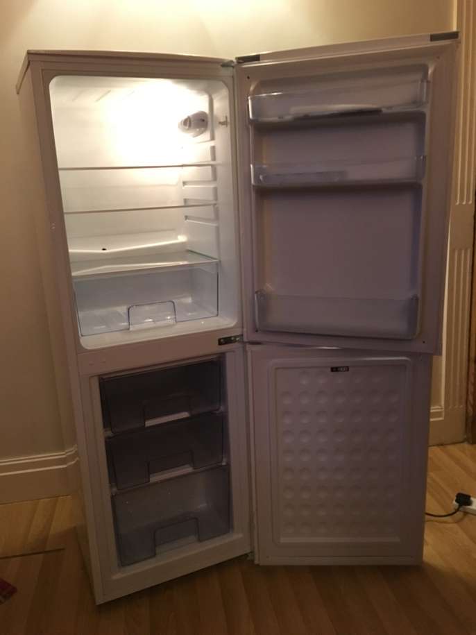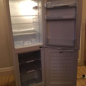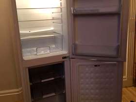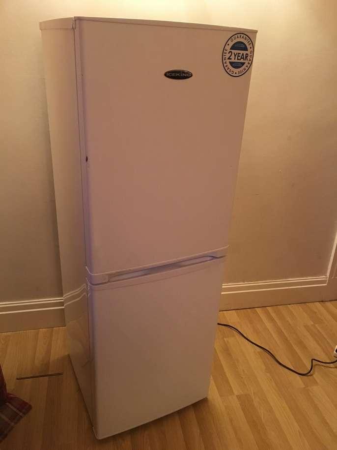 This slimline ice king fridge freezer model ik 3633 ap2 has a 130 litre capacity it is just a few months old the lady who owned it has had to go into a care home it stands 135 cm tall by just 48 cm wide and is 50 cm deep there is a slight dent and scuff to the paint on the fridge door which occurred during transportation i can deliver to the local halifax/bradford area for a £10 delivery charge