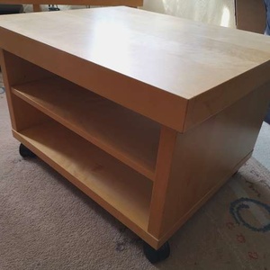 IKEA coffee table, in reasonably good condition. Length 60cm, width 50cm, height including wheels 39cm.