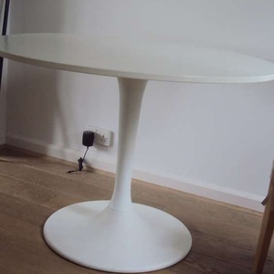 Very popular table, presently retails at £149 in Ikea, only a year old, it’s 103cm diameter, H 75cm, weighs 11.1kg. It’s very stylish. Also known sometimes as a tulip table because of the pedestal it sits on. You don’t bash into any legs because there aren’t any! Has instruction leaflet & own Allen key to put it together or take apart. Luckily for you it’s already assembled! But I have separated the round top from the pedestal for loading into your car, 6 screws to screw in, that's all. Comfortably seats 4-6. Selling for under half price: £70. Collect North West London (NW11) halfway between Golders Green / Finchley Central. Free parking. Bus stops in Finchley Road a 3 min walk or 5 min walk to bus stops on North Circular Rd.