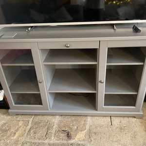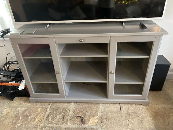 Matching grey tv stand with table. Excellent condition Tv cabinet. L 145 cm D 49cm H 88cm Table L 57 D 40 H 61