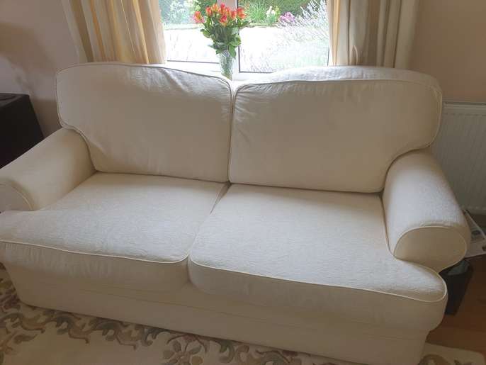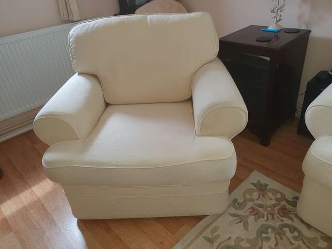 Cream sofa and 2 arm chairs, great condition. Covers fully removable and washable. Collection only Kelshall nr Royston. Smoke and pet free home. £100 ono