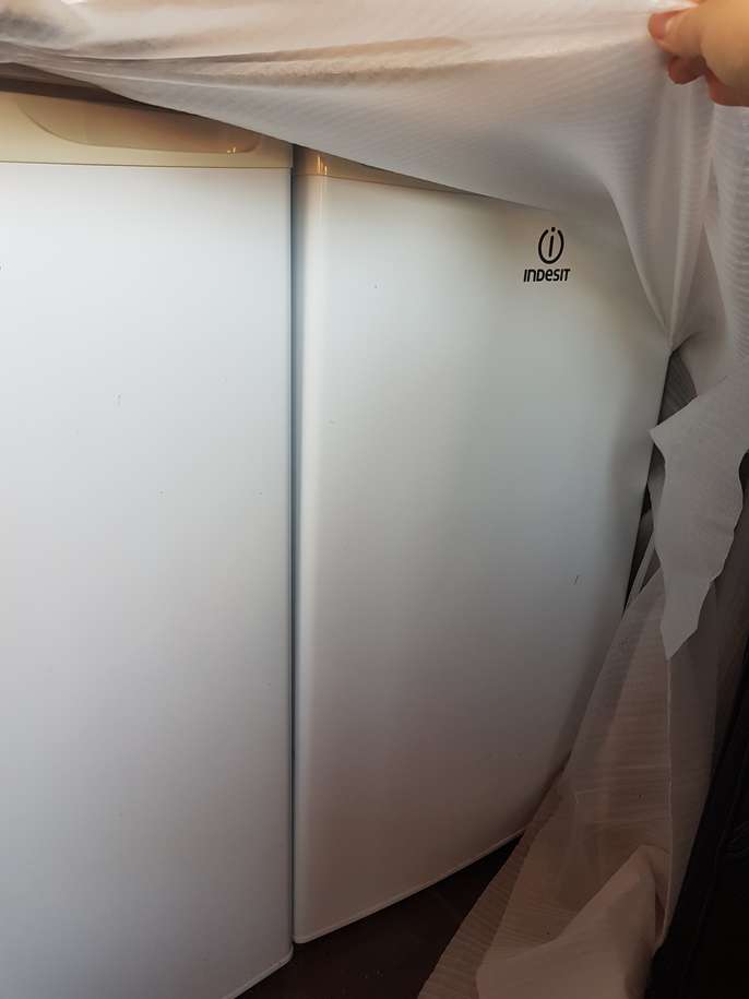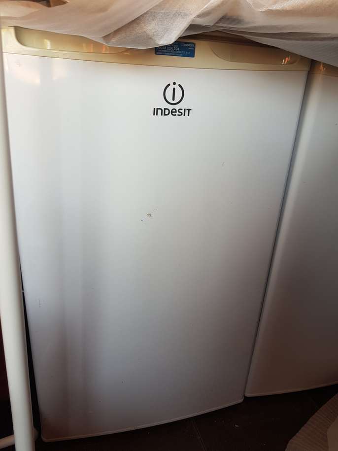 Indesit undercounter Fridge and freezer in white. Almost new as they have been used for only 6 month (period since we bought the house till our brand new kitchen was ready). 85x55x58cm. Brand new price is £150 each (£300 total). This is a great oportunity to buy them for less than half price.