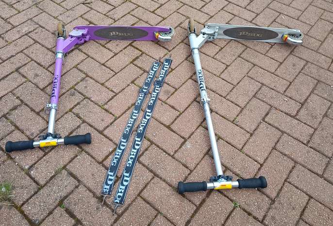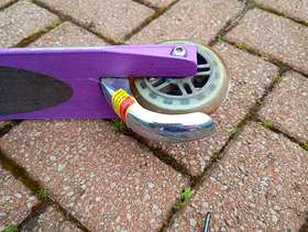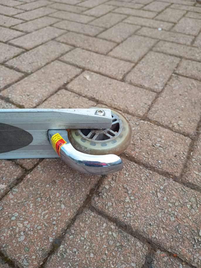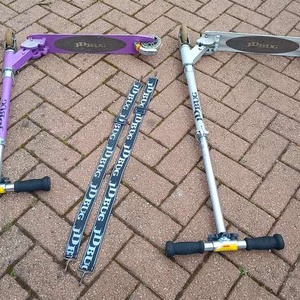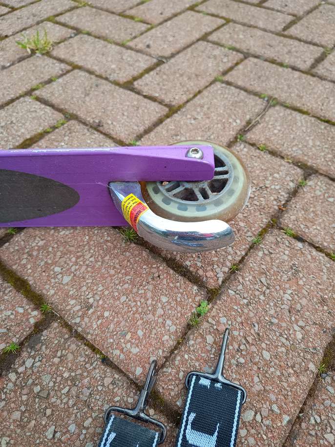 Well-loved, good condition. Purple scooter shows lowest handlebar position, silver scooter handlebar at highest position. £10 each or can sell separately. Collection Loudwater.