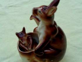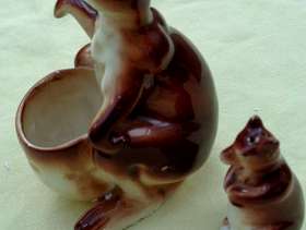SALT & PEPPER Set . These were bought in Australia and are in perfect condition. The baby one being pepper will sit in the Mums pouch this is a very attractive set and very different .