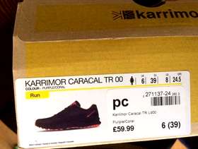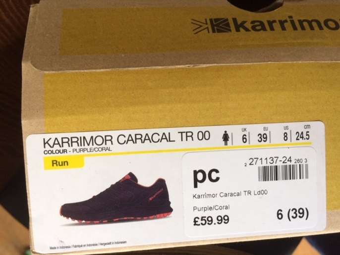 Karrimor Caracal TR 00 size 6 Ladies trail trainers. Charcoal grey and peach. Worn only twice for dog walking not running! They are a small size 6 hence the need to sell. I paid £30, offers welcome.