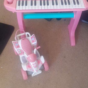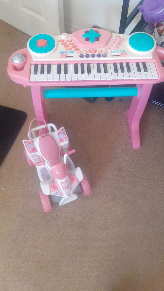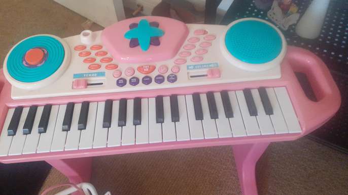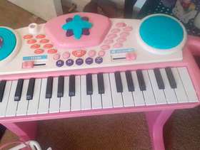 Kids musical dj keyboard with chair and sing along mic fully working and hardly played with so as new