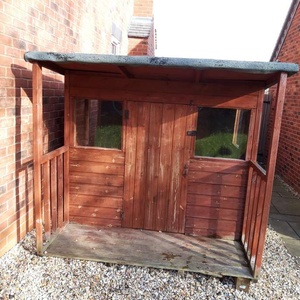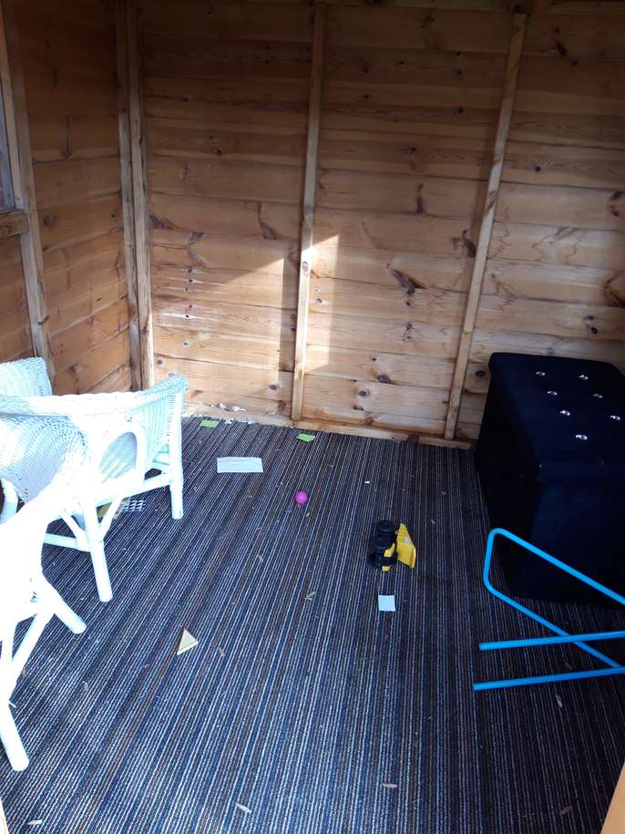 Wooden playhouse. In very good used condition. Comes with carpet. Dimensions will follow. Collect and dismantle only.