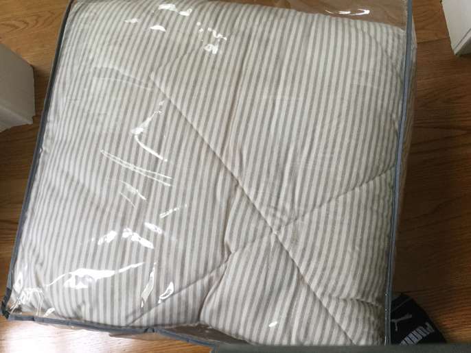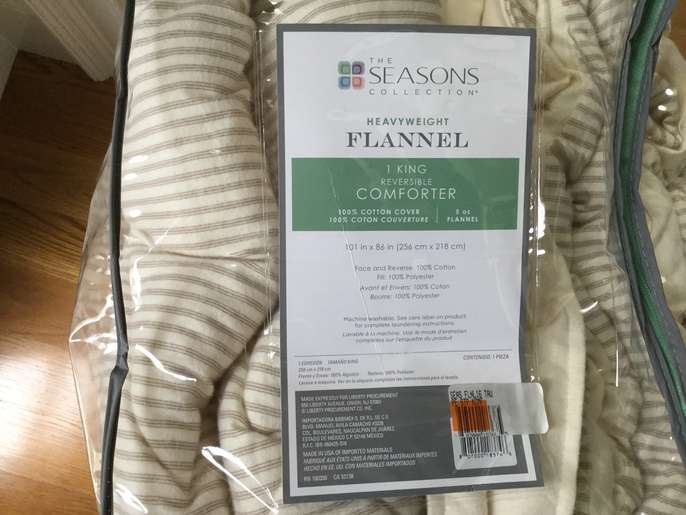 Like new and Lightly used tan/cream pillow ticking stripe flannel comforter. Great for winter warmth. Solid Cream color on the reverse side. Paid $ 70 for set