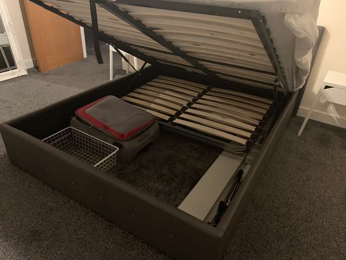 Great condition king size storage bed Selling duo to move need smaller bed Please call or txt on 07446877698