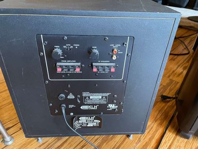 KLH E10 100 watt subwoofer This item is in El Cerrito All the details Flexible inputs and controls. It works, sounds good. What else can I say? Price $70 Time Remaining This listing has finished Category Electronics Post Message