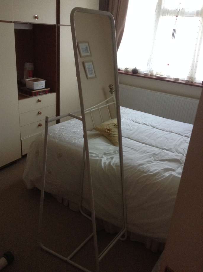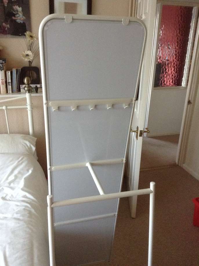 IKEA free standing mirror with valet stand at the back. Space to hang clothes and jewellery etc behind the mirror. Condition like new. 48 cm x 160 cm. Bought couple of years ago from IKEA for £45. Any reasonable offer accepted. Ideal for a teenagers room. Must be seen.