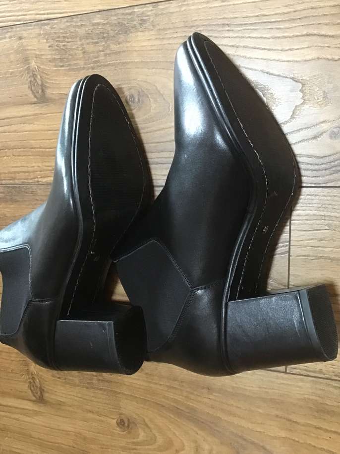 Black heeled leather boots from Topshop. Worn once but too high for me, so almost new. Elasticated sides for comfort. Collection from Allensmore, but could possibly meet in Asda/Sainsbury’s/Aldi