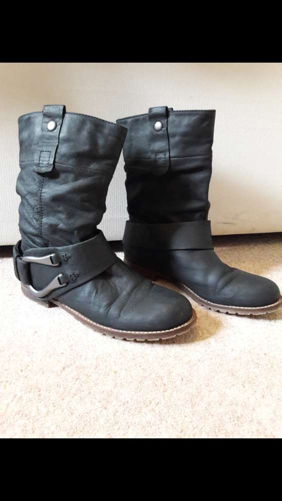 Black nubuck leather short ladies boots from Aldo Size 5 Very good condition hardly worn Height- 24cm Heel height- 2cm Cost over £100 new