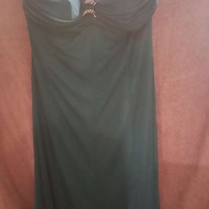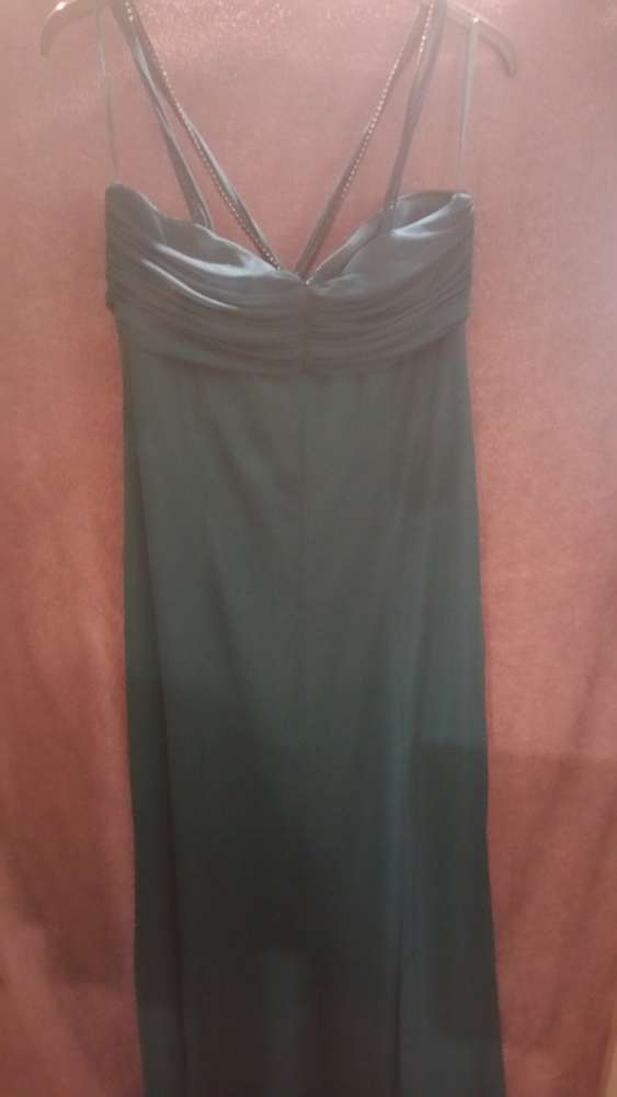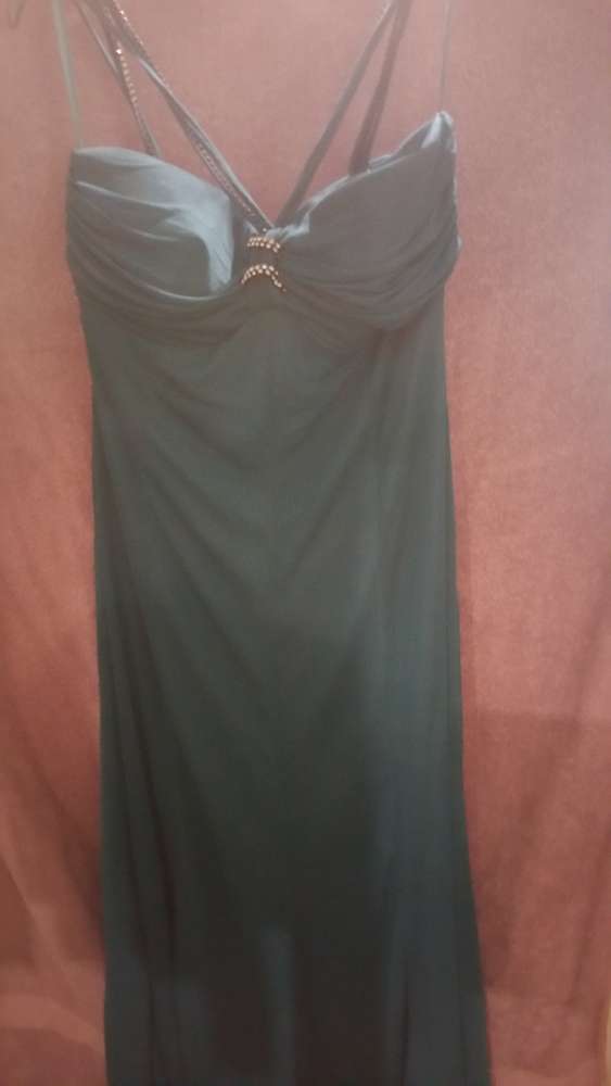 Very Elegant Ladies Evening/Cocktail Dress. Size 12-14 Emerald Green. Over the shoulder straps with diamantes and ruched bra ..slight flare from under bust. Original cost £65.00