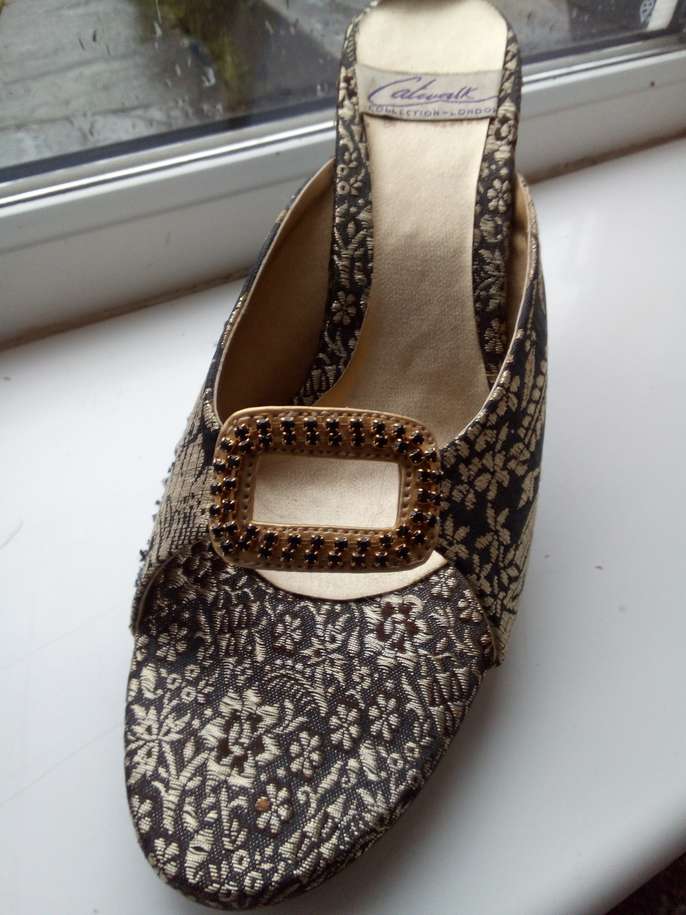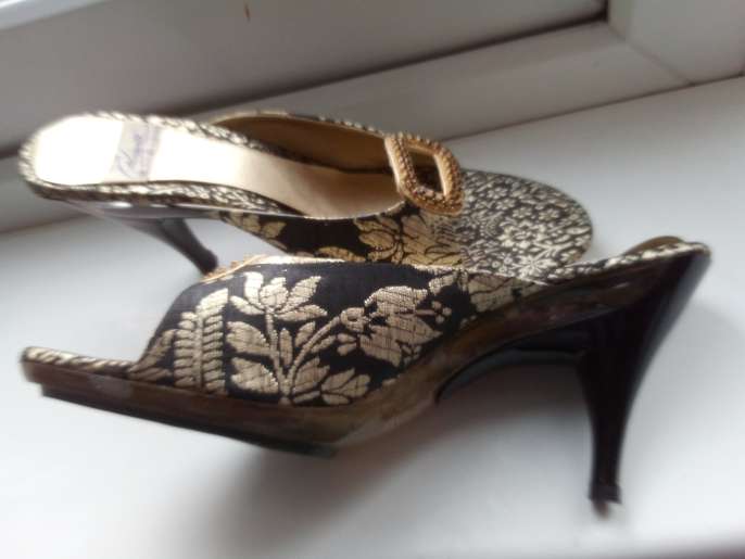 Catwalk Collection-London. Gold & black slip on shoe with decorative front buckle. Size 6 Brand new. Never worn.