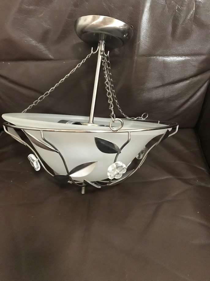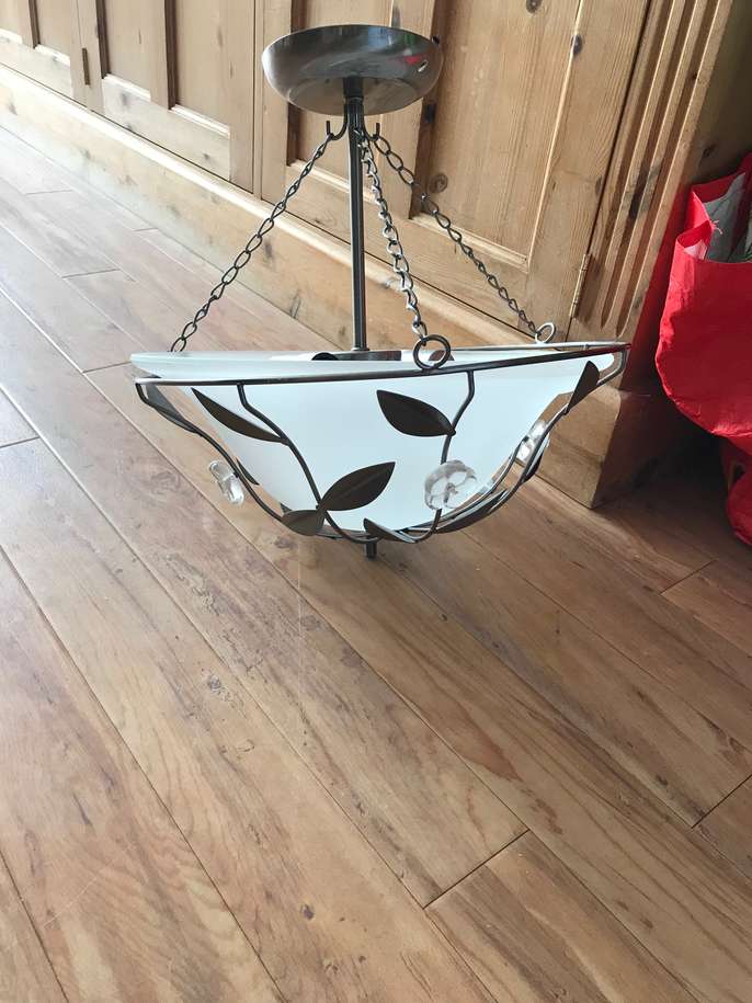 Chain drop lampshade, lovely leaf and flower feature. No damage, great condition. Diameter 13.5"; drop approx 8.5"; - Pick up only - Chale Green area.