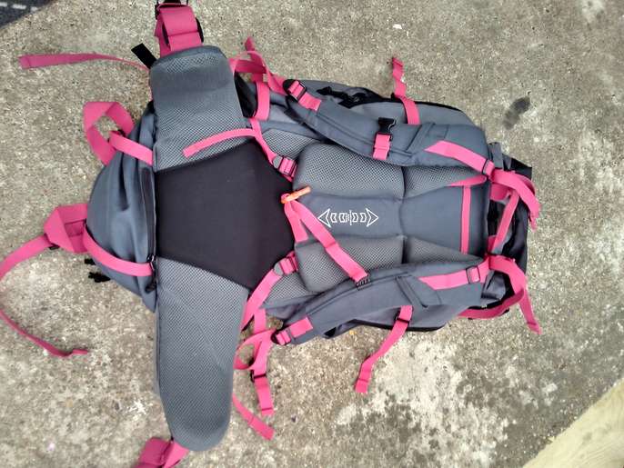 Used backpack but not much wear in it, still in very good condition, not damaged only no longer needed. Provides very good back support. Comes with a rain cover.