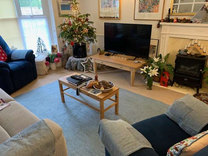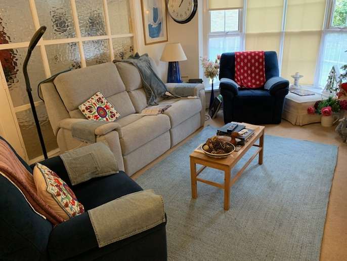 Beautiful, hand-braided rug (orig John Lewis) in Blue/grey as shown. Made of polyester.