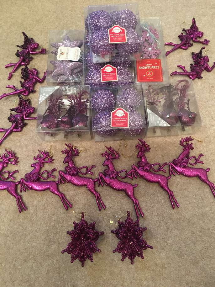 Large bundle of pink/purple Christmas tree decorations All Brand New and Unused From a pet and smoke free home On other sites