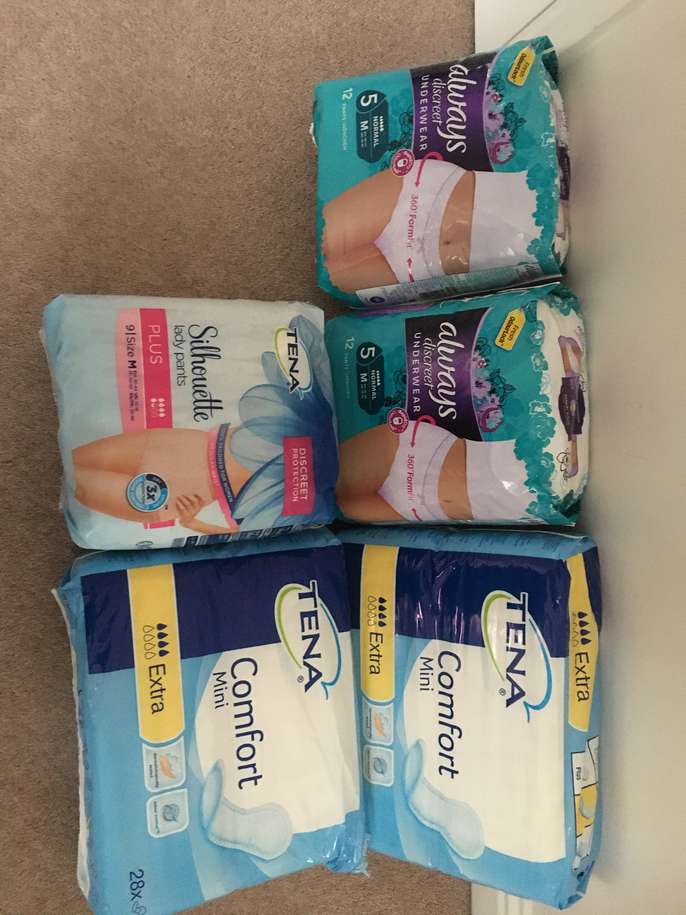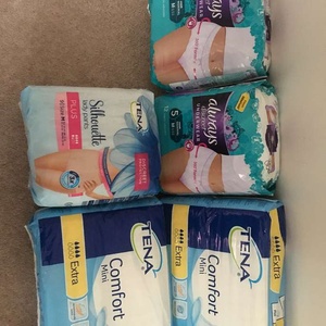 Large Bundle of TENA/ALWAYS Products - All brand New 5 Brand New Packs 1 x Tena Silhouette Lady Pants - Size M 2 x Always Pants - Size M 2 x Tena Comfort Mini Extra All items in original packaging Collection from GU15 area