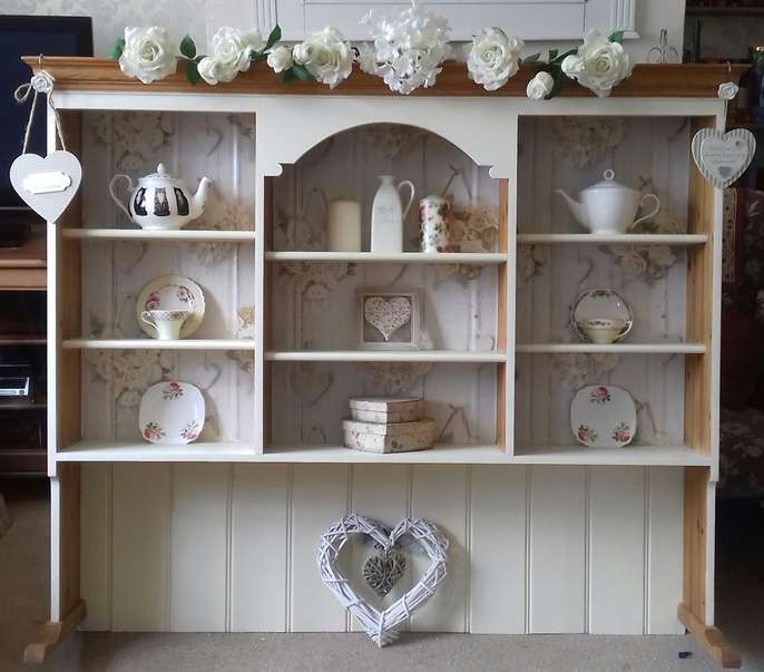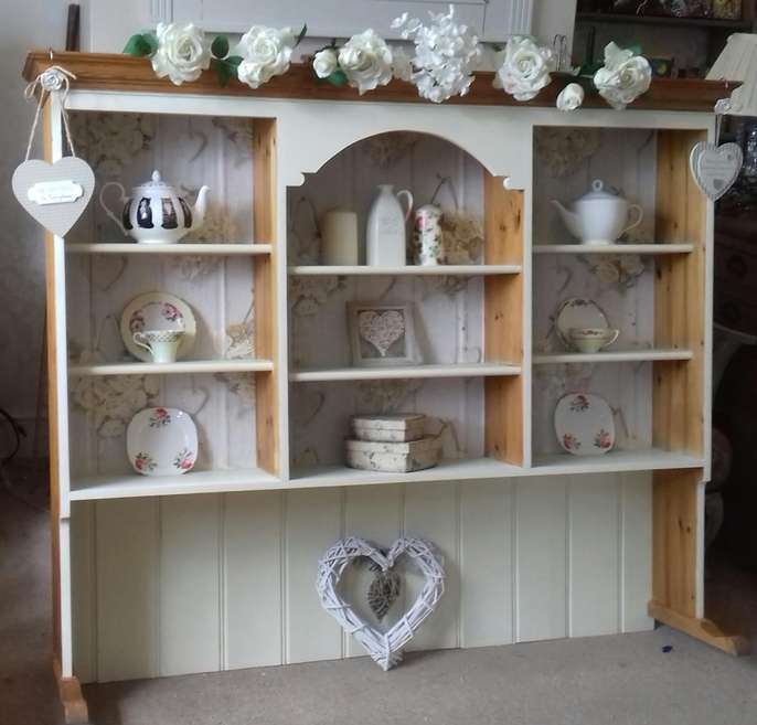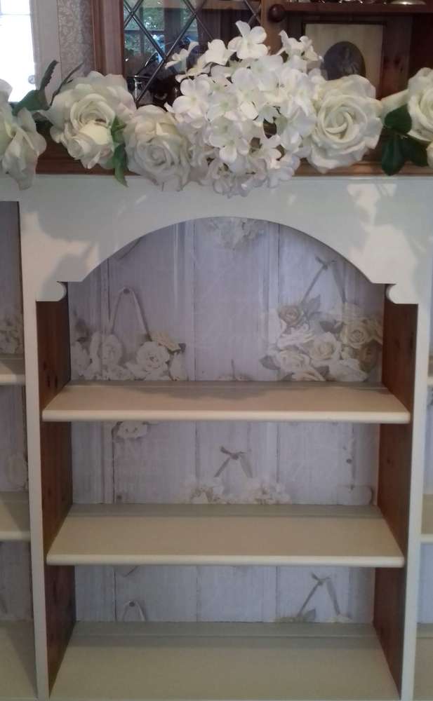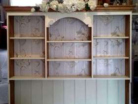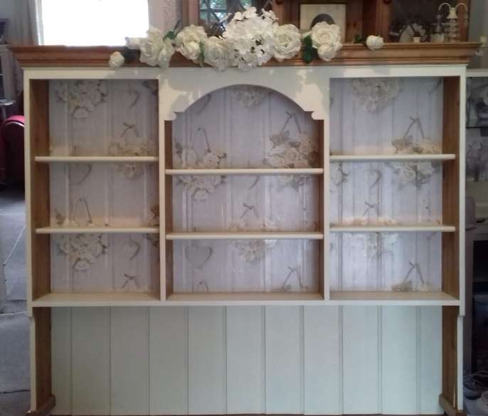 The wallpaper is a lovely fresh mixture of Cream & Pale Yellow flowers, which has been glazed to give it a lovely sheen, and also for protection. The paint is a Pale Lemon colour which has been waxed. I'm keeping the rest of the unit in its natural wood, which I have applied a Danish Oil to bring out its lovely natural Colour. This is a large piece of furniture with plenty of space for all your display items, measuring: 60" Wide, 49" High, (plus 1" lip at the bottom) 14"Deep Collection Bierton