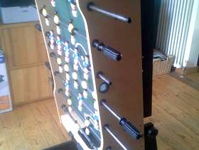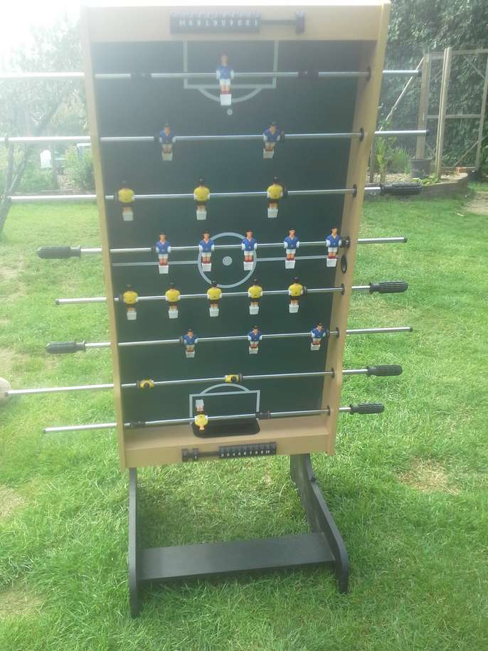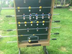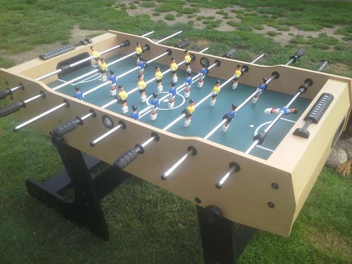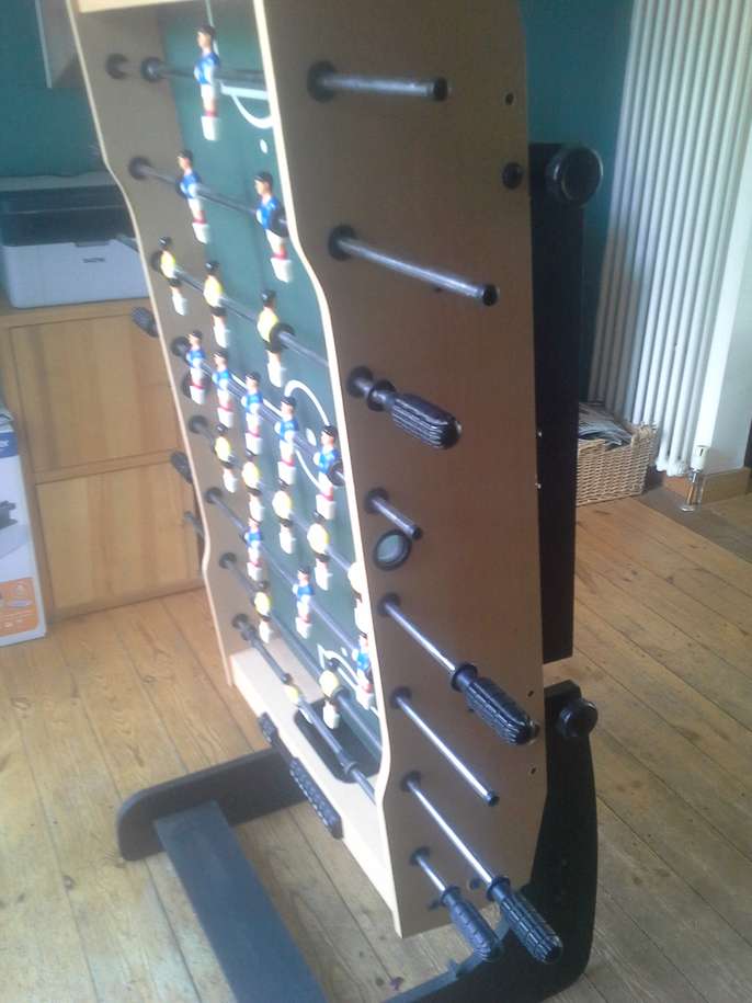 Foldable football table. Good used condition, 1 rubber handle missing, does not affect use of table.