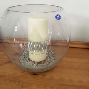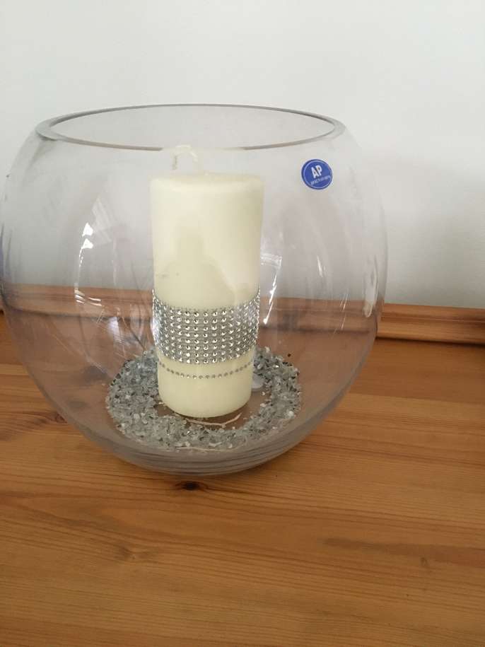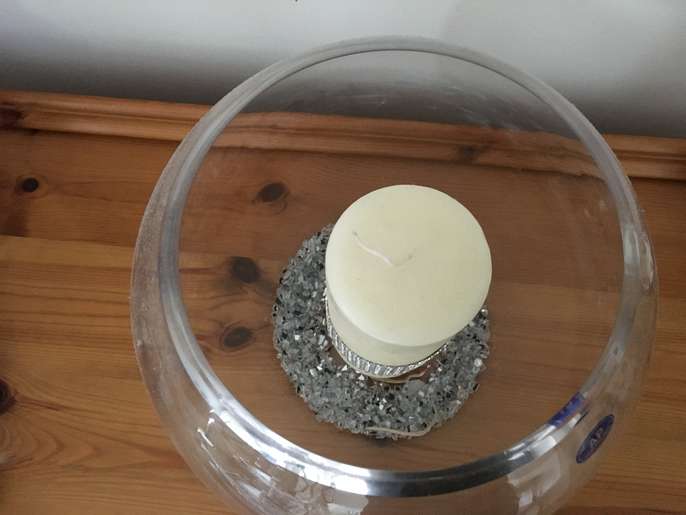 Large glass bowl which can be used for various things At Christmas I used to fill it with baubles or fir cones The candle and glitter are to give you an idea of uses - the candle/glitter are NOT included in the sale Collection from GU15 area