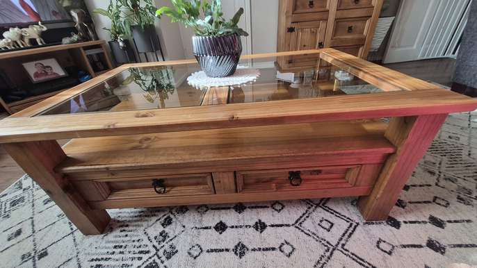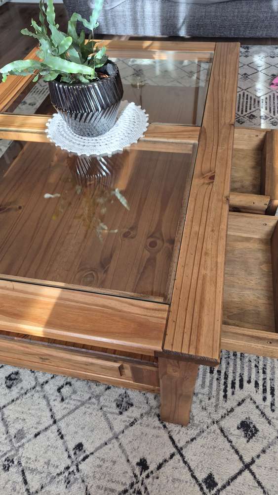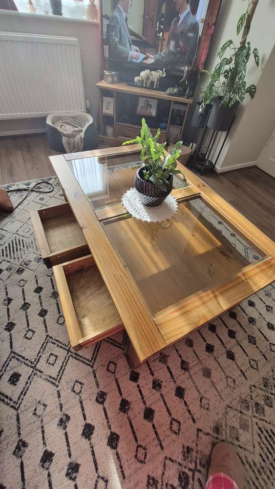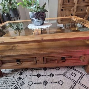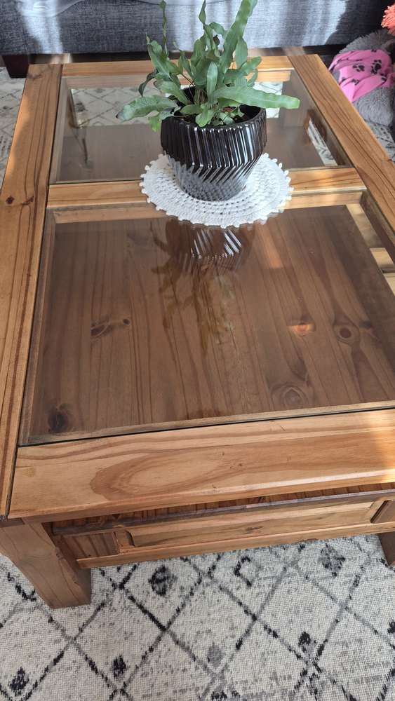 Large glass topped coffee table