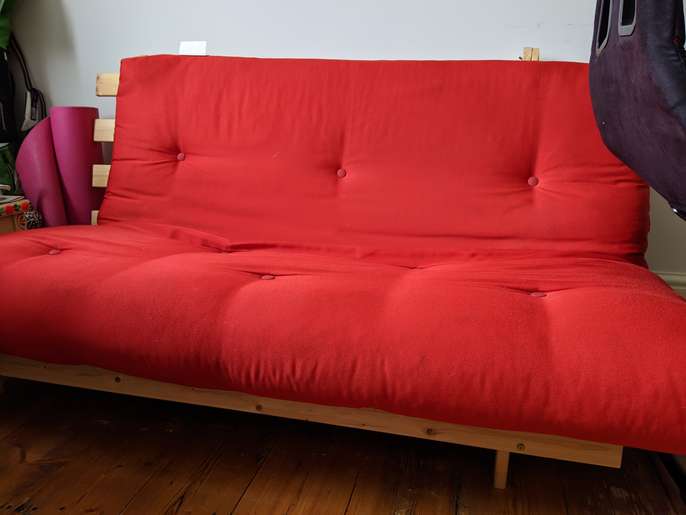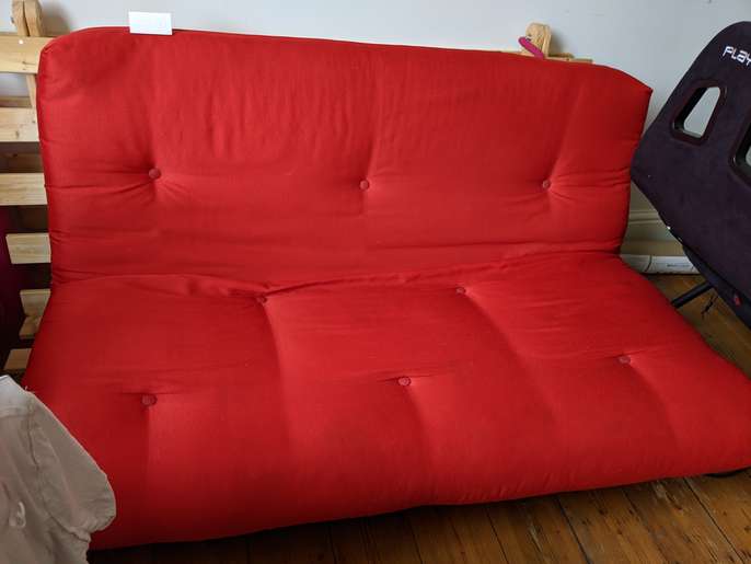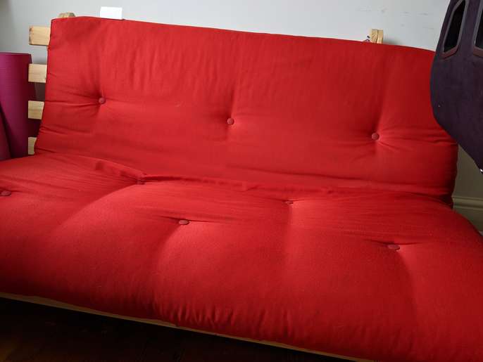 Large single/ small double futon This item is in Bethnal Green GB All the details Red Wooden £20 Measures about 138 cm across Good condition Hardly used Price 20 Time Remaining This listing has finished Category Home & Garden Post Message