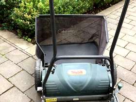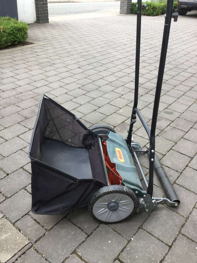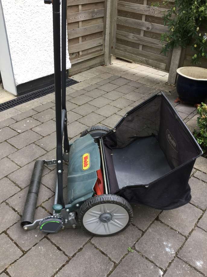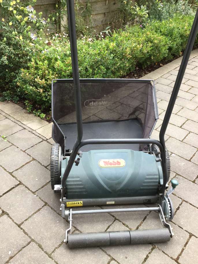 Webb Rotary Lawn Mower, 16in blade, ca 3-4 yrs old. Blade may need adjusting. Grass box incl.
