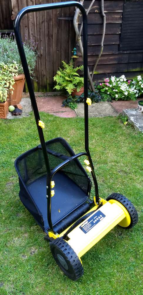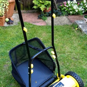Push LAWNMOWER ideal for small garden. Challenge 30cm Hand Push Cylinder Lawnmower. About 2 years old, from Argos, (listed as £40 new). This lightweight and easy to push cylinder lawnmower is ideal for a small garden. The cylinder contains 5 metal cylinder blades. Features 4 height positions to choose from ranging from 1.8cm - 3.8cm. Easy to adjust. Includes clip on holder for grass collection Lawnmower features: 30cm blade width. Cutting height range of 1.8cm-3.8cm. 23L grass collection capacity. Rear roller. Weight 6.4kg.