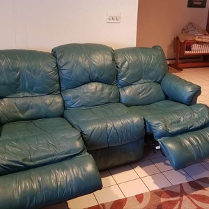 Leather double recliner sofa