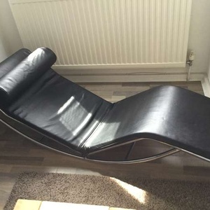 DARK BROWN LEATHER LOUNGER WITH CHROME FRAME. ADJUSTABLE HEAD CUSHION. VERY COMFORTABLE AND RELAXING. LOVELY CONDITION, NO RIPS OR MARKS. L 1600mm x W 530mm Tapering down to 410mm