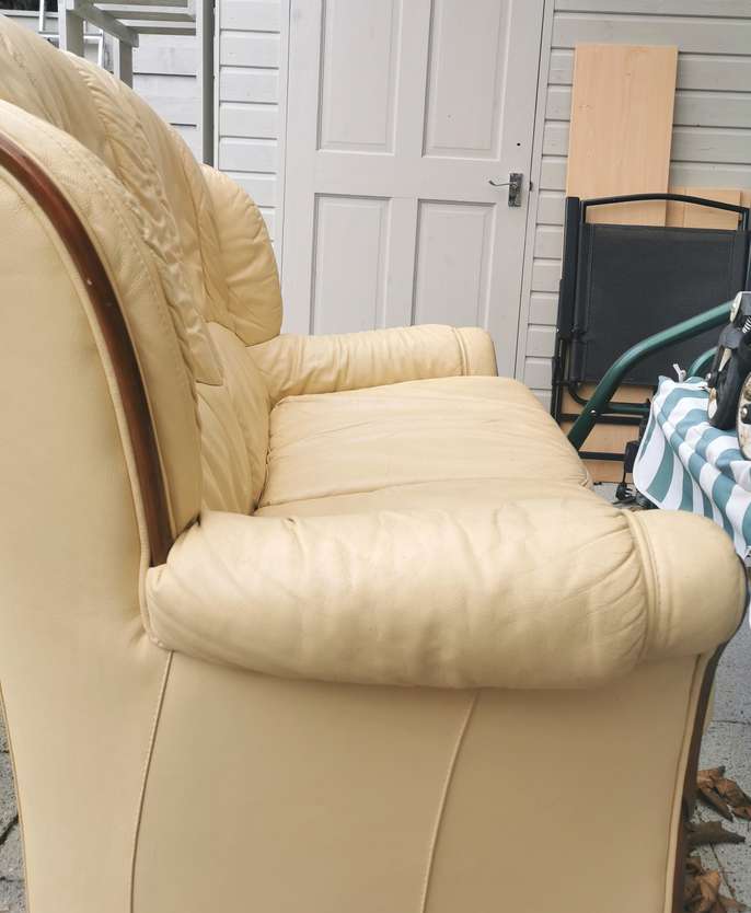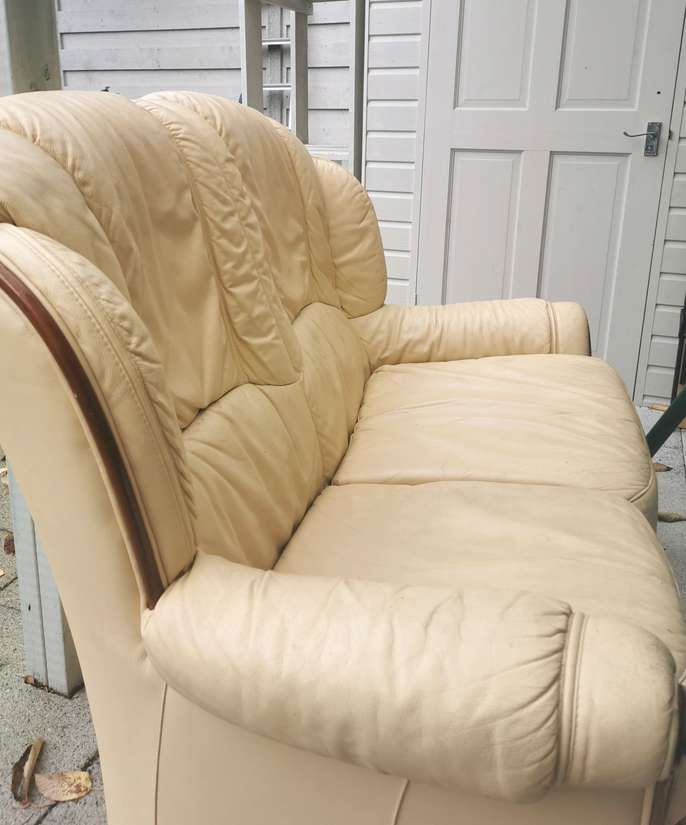 Leather sofa This item is in Mortlake GB All the details Beige leather sofa, high back. Very comfortable sturdy sofa with fire safety label Price £3 Time Remaining This listing has finished Category Furniture Post Message
