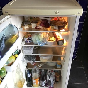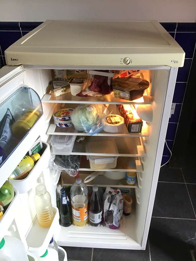 Fridge needing new home. Used until recently when we rejigged kitchen. Can be seen working. Now emptied and ready to go. Height 44.5in (113cm), depth front to back 25in (64cm) including back grill, width 21.5in (55cm) Collection from Allensmore