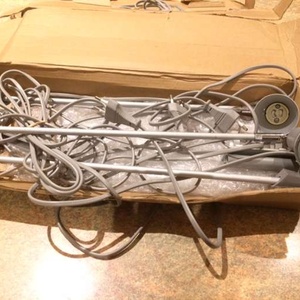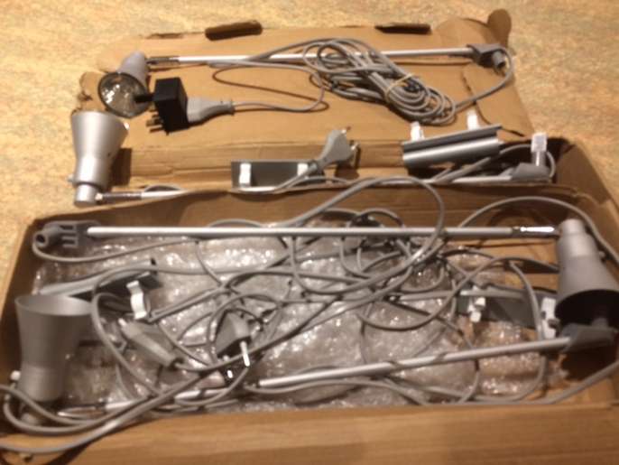 Previously used and reliable lights for exhibition stands or in fact for anything which you want lit up. These are pre-used but in full working order. 2 of the lights have bulbs and do not. Please note these have 2 pin plugs but 1 adaptor is provided. Might split to 2 sets of 2 - just ask. Collect from Guildford GU1.