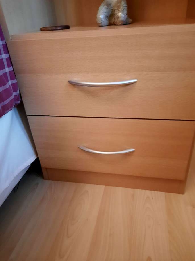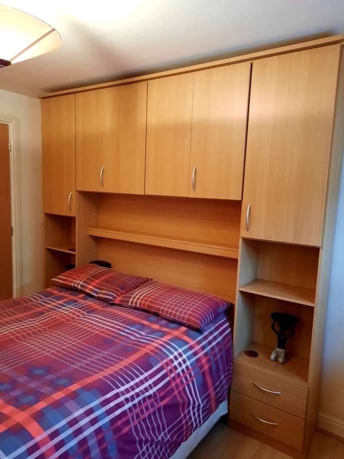 Lima Range Over Bed Storage Unit Beech Effect Fits over 4' 6" Double Bed H225cm x W241cm x D36cm Comprises of 4 cupboards, 4 drawers, 2 storage shelves Quality well made unit purchased from Bensons Beds I also have the matching mirror front sliding door wardrobe and matching chest of drawers Can be viewed before purchase Buyer to dismantled and collect from Apsley HP3 9HE