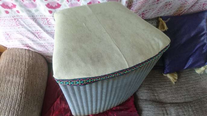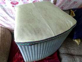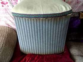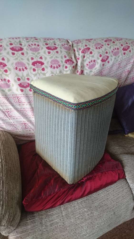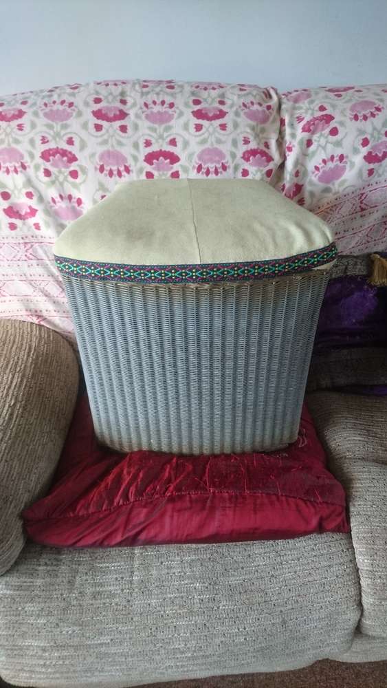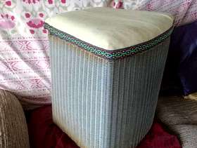 Genuine Lloyd loom linen bin for restoring or upcycling. Needs new padded top, and some other work. Dimensions 17" / 43cms high, 15" / 38cms wide at front, 13" / 33cms deep (front to back).