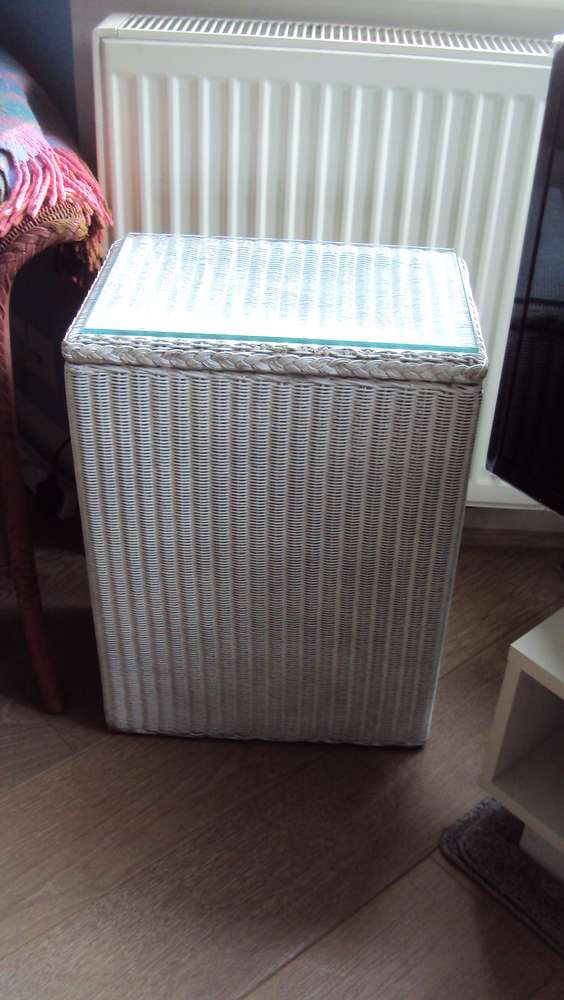 Lloyd Loom vintage white Lusty linen or laundry box Had this in the family since forever, it’s a genuine Lloyd Loom Lusty piece with the original Lusty plaque inside the lid, dimensions 54 H x 34 x 28cm. It comes with a glass top to make it sturdy as I used it as a bedside table. It’s white and in fairly good condition. £11 cash. Collect in London NW11 halfway between Golders Green and Finchley Central tube stations, buses a 3 min walk on Finchley Road (nearest bus stop post code is NW11 6AG). Free to park outside.