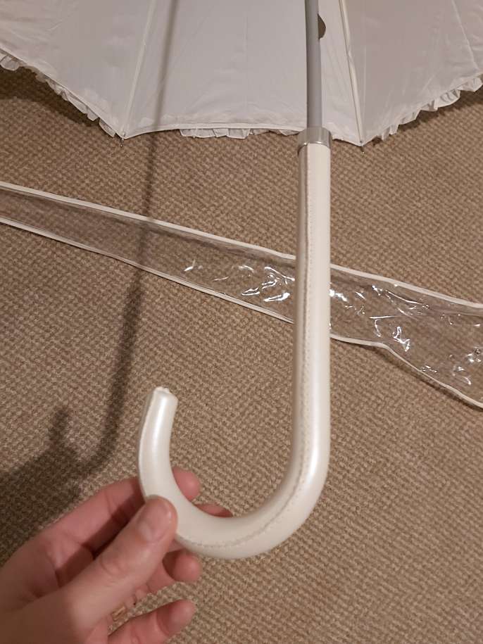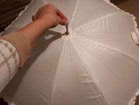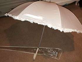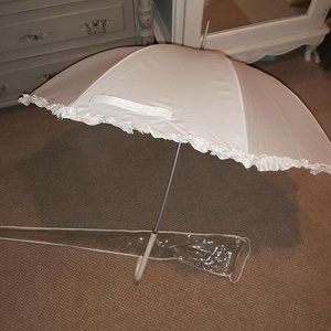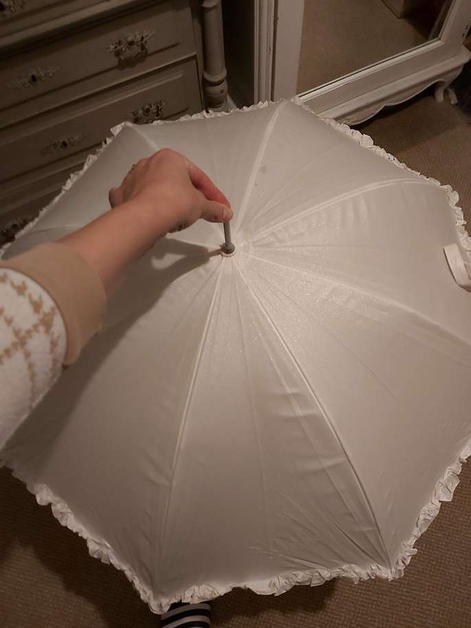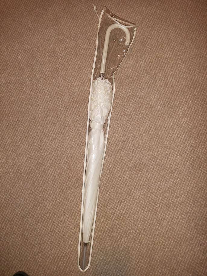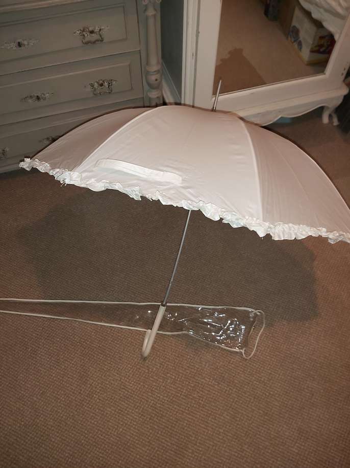 Lovely ivory shimmer frilled umbrella bought for a wedding Used condition....got some marks on it Carry case isnt perfect condition either Smoke and pet free home