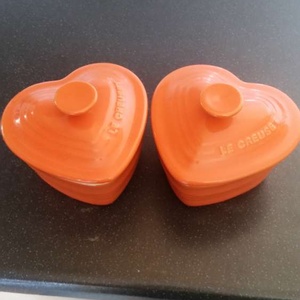 Genuine LeCreuset Mini Casserole/pudding ramekins for sale. 4.5 Inches at widest point, and 2.5 inches deep without the lid Lovely items only used once. Orange coloured and very good condition. Cash on collection or local drop off only.