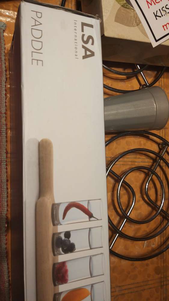 This brand new grand vodka set, original price in John Lewis of £95, is designed for distinctive serving at drinks parties. The hand-finished natural oak board securely nestles twelve vodka glasses in assorted colours and features two handles for serving with ease. Collection from TW19. It is also on other sites so please hurry if you are serious and kindly send your name and number with your reply.