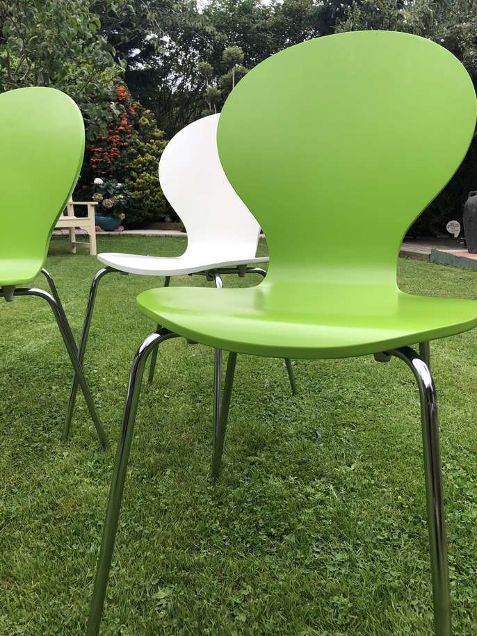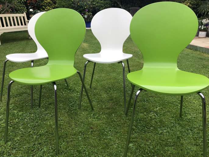 Made.com chairs This item is in Didcot GB All the details 4 Made.com chairs, 2 green and 2 white in excellent condition. Buyer must collect Price £25 for the set Time Remaining This listing has finished Category Furniture Post Message