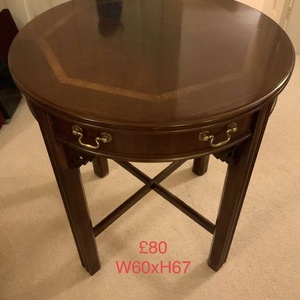 Solid mahogany side table with a draw in very good condition. W60xH67 From a smoke and pet free home. Collection from Banstead SM7