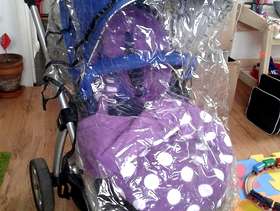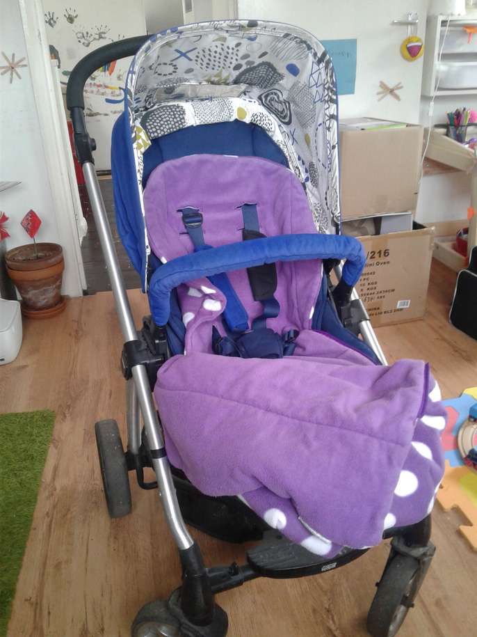 Second hand sola buggy with rain cover and fleece footmuff. one of the shoulder strap paddings has been replaced.