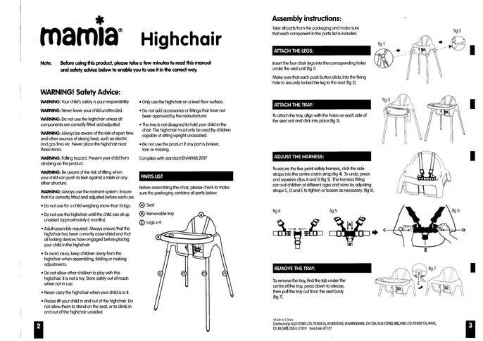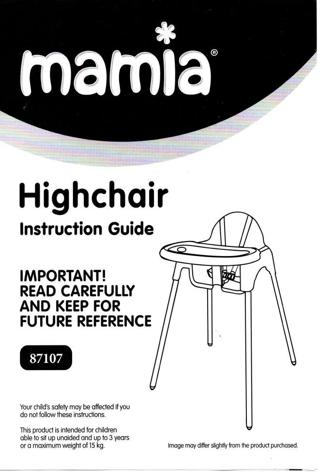 Mamia Highchair This item is in Worcester Park GB All the details Mamia Highchair, used, in good condition Manual attached Used for few months only. Price £5 Time Remaining This listing has finished Category Baby and Child Post Message