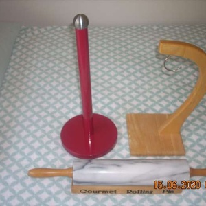 FOR SALE . Marble rolling pin on stand . Quite heavy . Perfect condition . Not used . Looks nice on display in kitchen . Kitchen roll stand and banana hook stand come with it free .
