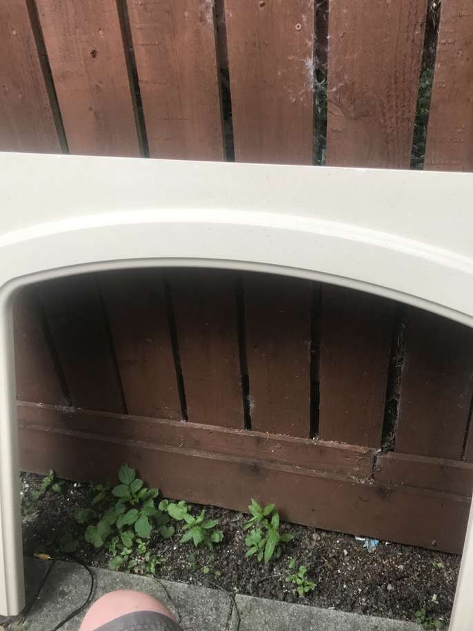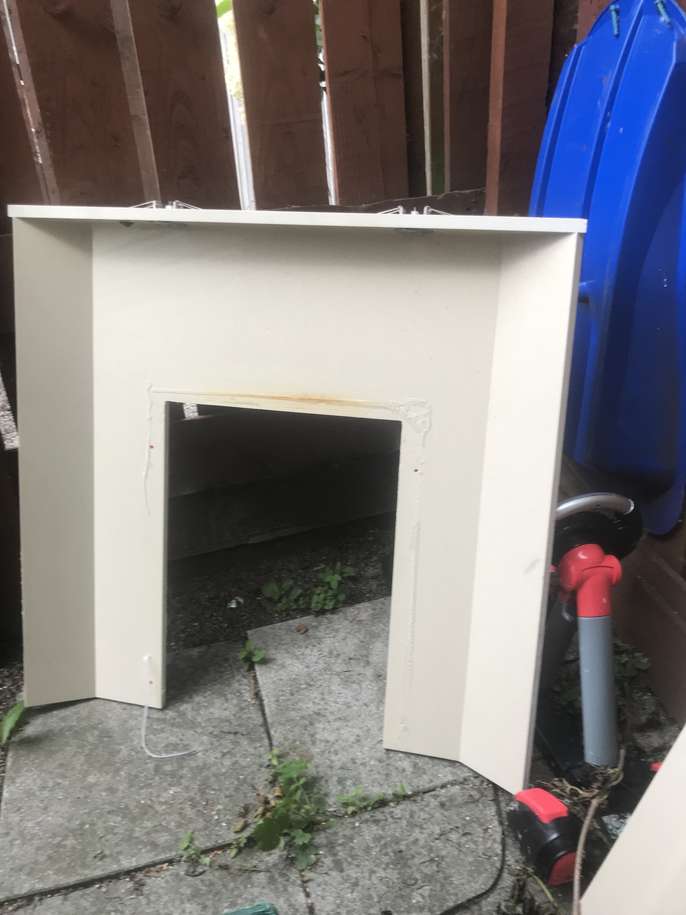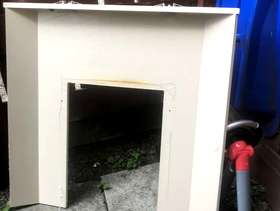3Pc marble stone fireplace, base,back,and fire surround, good condition, Cream color,